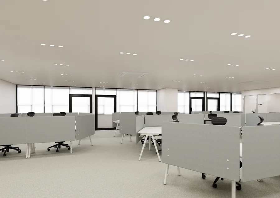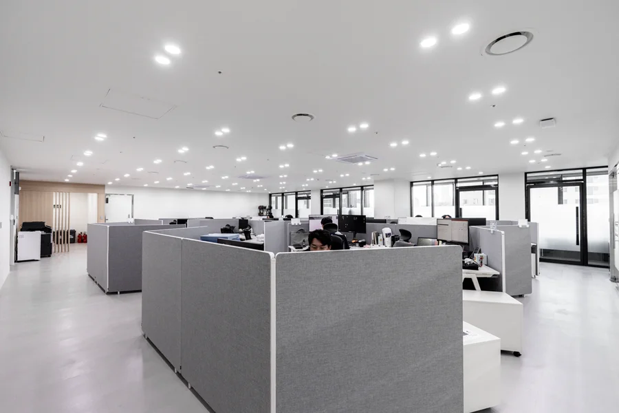 현대적인 오피스인테리어트렌드 중 하나는 개방형 사무공간입니다. 이는 부서 간 경계를 허물고 직원들 간의 상호작용과 협업을 촉진하기 위한 디자인 접근 방식입니다. 오픈 플랜 레이아웃은 유연성과 확장성을 제공하며, 팀 빌딩과 창의적인 아이디어 교환을 장려합니다.