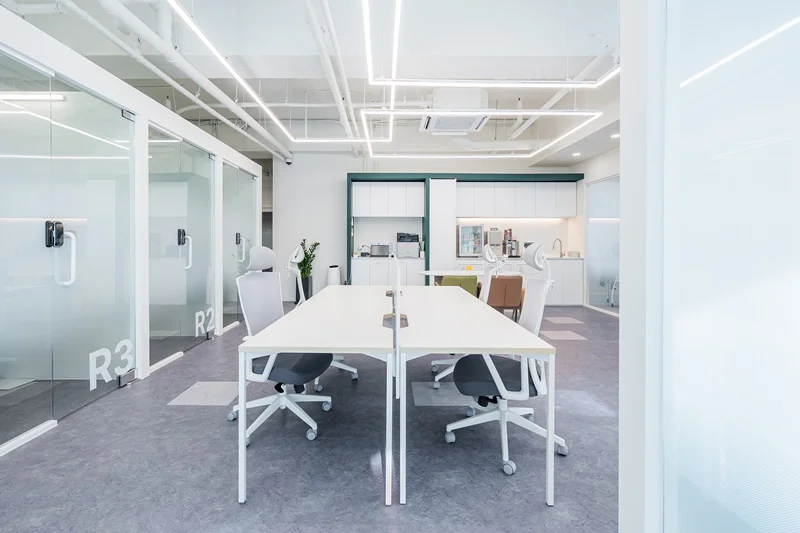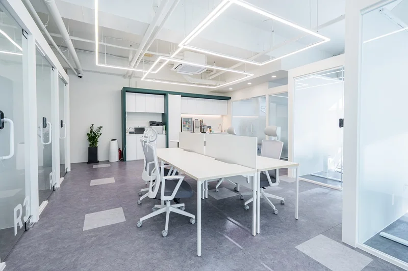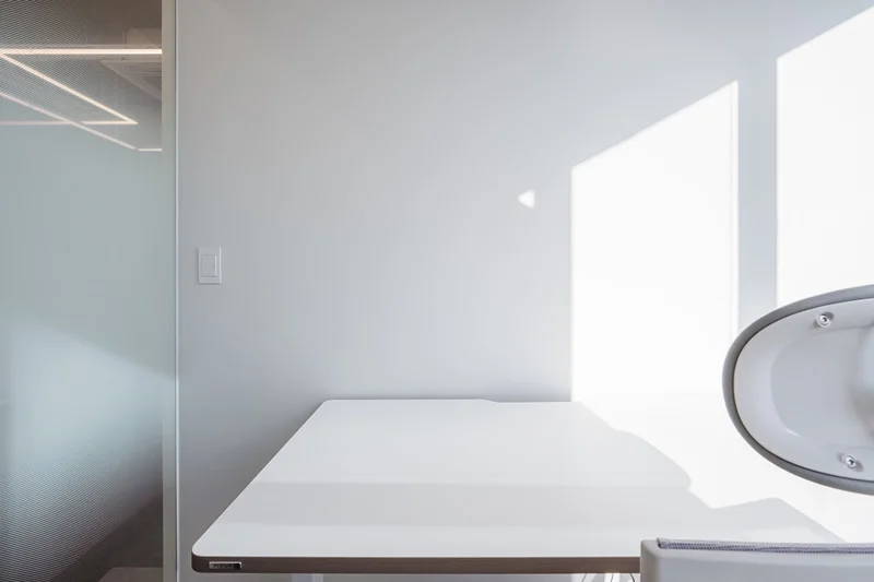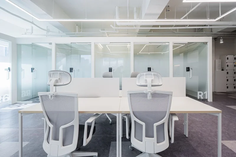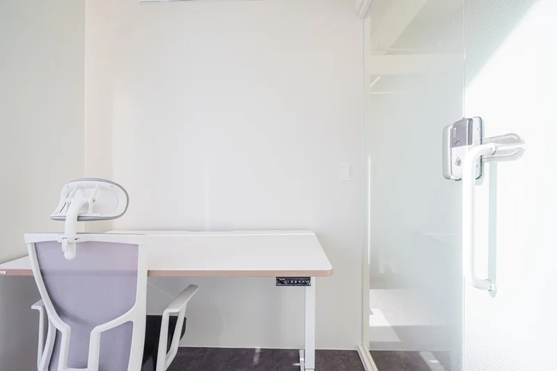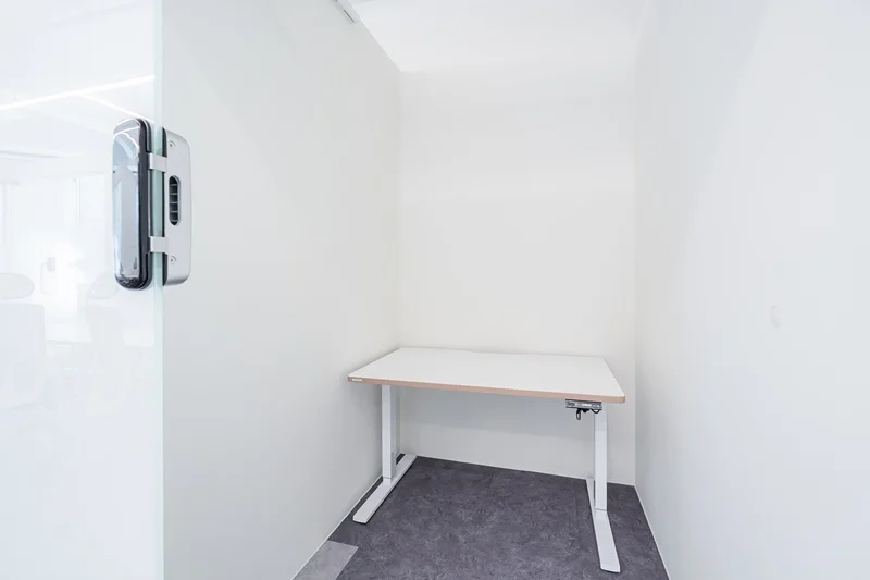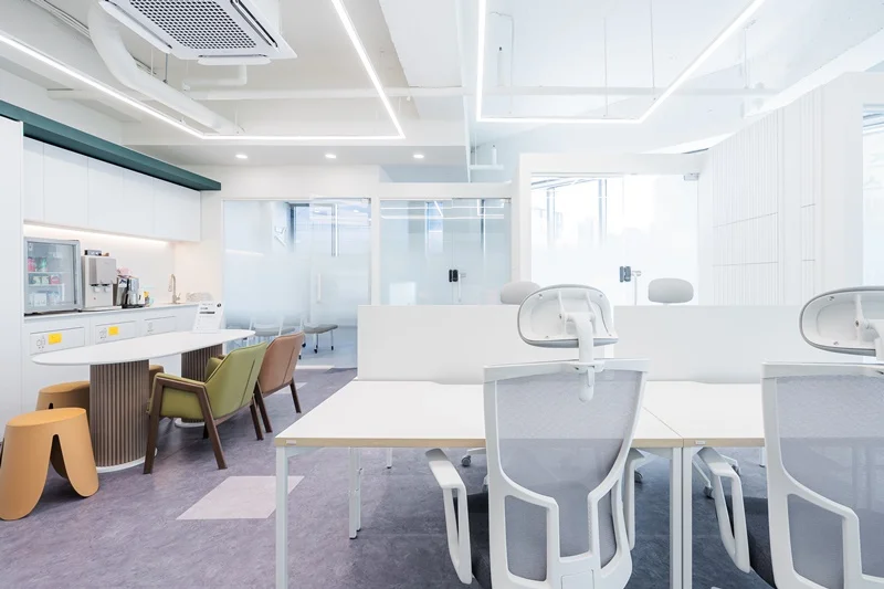 내부를 좀 더 살펴보면, 화이트 톤의 벽면과 깔끔한 데코타일 바닥이 조화를 이루어 실제 면적보다 훨씬 넓어 보이는 효과를 주는데요. 모든 좌석에는 전동식 높낮이 조절이 가능한 모션 데스크를 기본으로 세팅하여 입주자가 자신의 체형에 맞게 업무 환경을 커스터마이징할 수 있도록 했답니다.