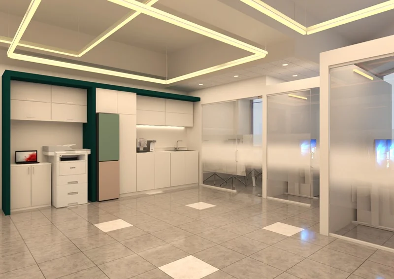 본격적인 공사에 앞서 진행된 디자인 제안 단계에서는 한정된 면적 내에서 어떻게 하면 개방감과 독립성을 동시에 확보할 수 있을지에 모든 초점을 맞추었답니다. 공유오피스 인테리어의 핵심은 입주사가 실제 업무에 몰입할 수 있는 쾌적한 환경을 조성하는 것이기에, 평면 구성 시 복도는 동선의 효율성을 고려하여 직선 위주로 명확하게 배치했는데요. 자칫 단조롭거나 답답해 보일 수 있는 벽면에는 매립형 간접 조명을 계획하여 공간에 입체적인 깊이감과 따뜻한 무드를 부여했답니다.
