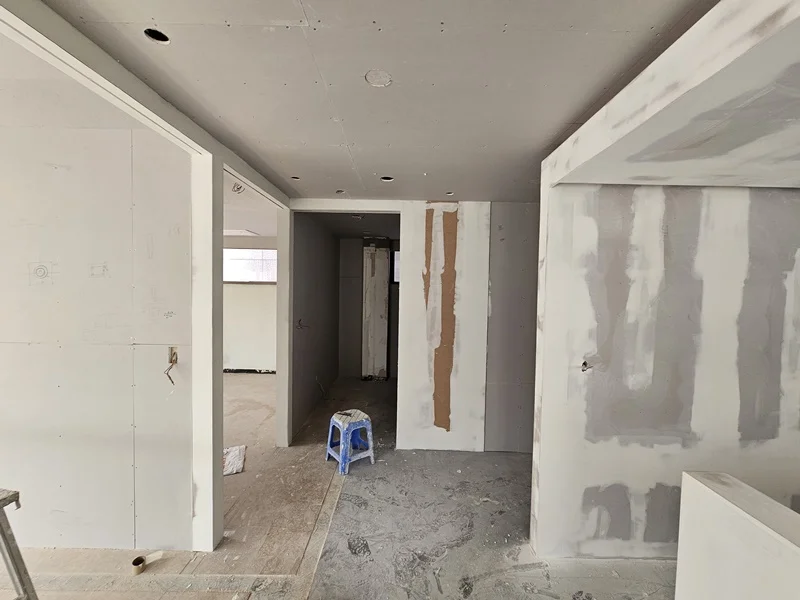 공사 시작 단계에서는 가장 중요한 색감을 살리기 위해 베이지 벽체의 밸런스부터 꼼꼼하게 잡았어요. 단순히 한 가지 베이지 색만 사용하는 것이 아니라, 톤 차이가 너무 크지 않으면서 공간에 깊이감을 줄 수 있는 세 가지 베이지 계열을 테스트해 가장 안정적인 조합으로 선정했어요.