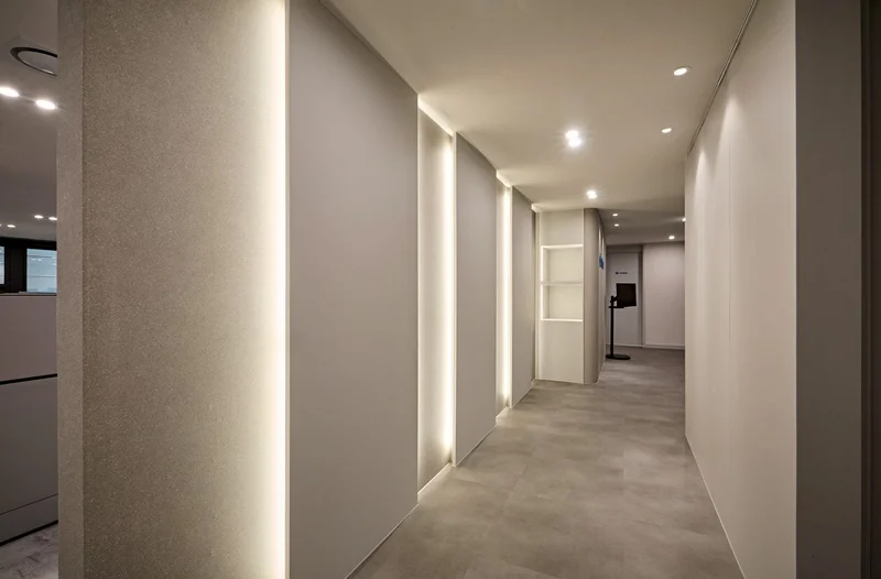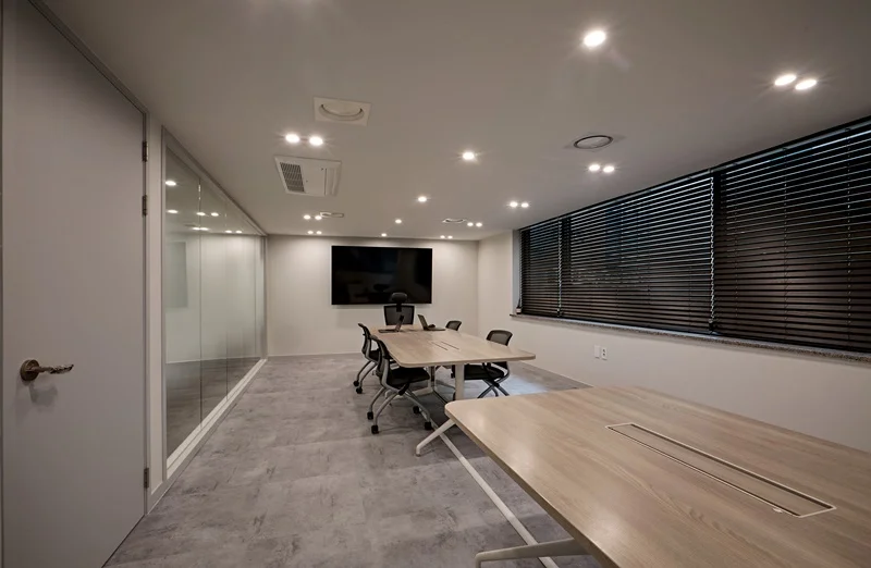반면 간접 조명은 빛을 벽이나 천장에 반사시켜 확산시키기 때문에 훨씬 부드럽고 안정적인 분위기를 만들어 줍니다. 이는 장시간 근무하는 사무실 환경에서 매우 중요한 요소입니다. 또한 간접 조명은 공간의 구조를 강조하는 역할도 합니다. 예를 들어 천장 라인을 따라 조명을 배치하면 공간이 더 넓어 보이는 효과를 주고, 벽면에 간접 조명을 넣으면 깊이감이 생깁니다. 이러한 연출은 단순한 평면 공간을 입체적으로 보이게 만들어 전체적인 완성도를 높입니다. 브랜드 이미지 표현에도 효과적입니다. 특정 색온도의 조명을 사용하거나, 포인트 조명을 통해 로고나 주요 공간을 강조하면 방문자에게 강한 인상을 남길 수 있습니다.