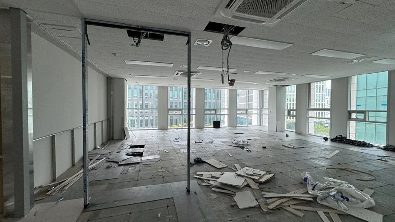 본격적인 시공 단계에 접어들면 빌딩리모델링업체의 현장 관리 역량이 프로젝트의 성패를 좌우합니다. 대형 빌딩의 경우 기존 구조물의 노후 상태를 정확히 진단하고, 철거와 신설 공정 간의 간섭을 최소화하는 것이 핵심입니다. 리모델링의 시작은 철거입니다. 하지만 무분별한 철거는 건물의 안전을 위협합니다. 유능한 현장 전문가들은 도면 검토와 현장 실측을 통해 내력벽과 비내력벽을 철저히 구분합니다.