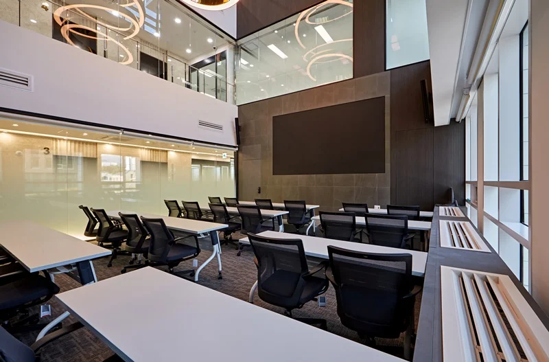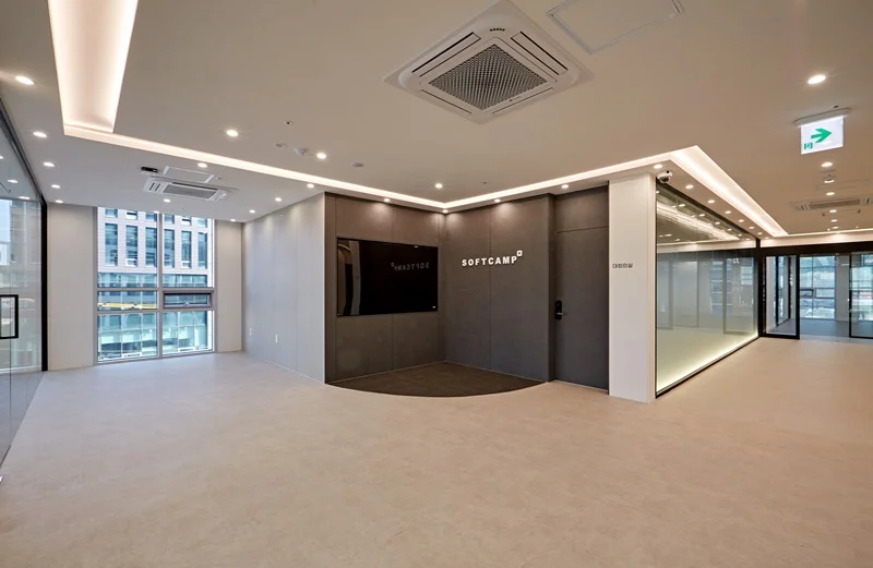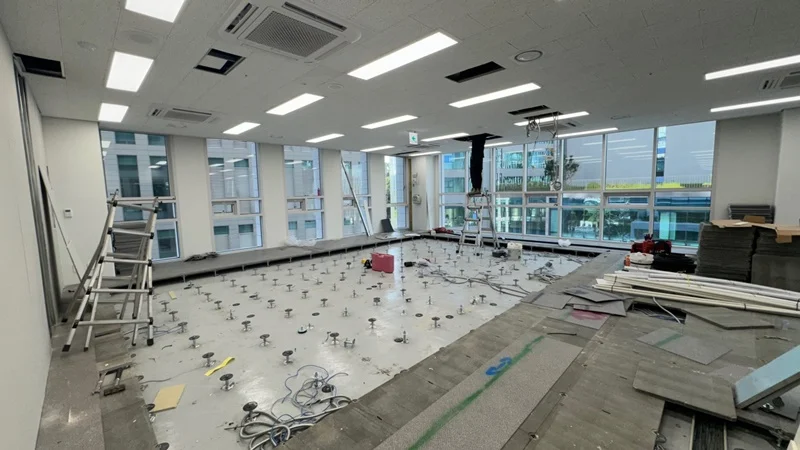 특히 IT 장비의 하중을 견뎌야 하는 서버실이나 대규모 라운지의 경우 필요에 따라 탄소섬유 보강이나 H형강 보강 공사를 병행하여 구조적 안정성을 확보합니다. IT 오피스의 심장은 전산실과 네트워크입니다. 24시간 중단 없는 서버 가동을 위해 이중화된 전원 공급 장치(UPS) 설치와 효율적인 냉각 시스템 구축이 필수적입니다. 시공팀은 바닥 밑으로 배선이 지나가는 악세스 플로어(Access Floor) 시공 시 단차 없는 정밀한 마감과 함께, 향후 유지보수가 용이하도록 선로 라벨링 작업을 꼼꼼히 진행합니다.