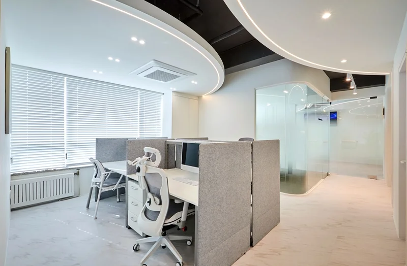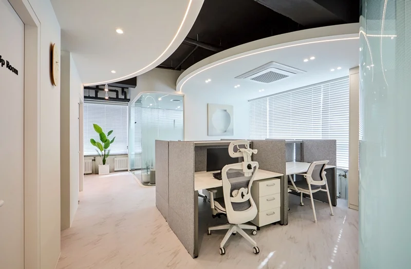 오픈 오피스: 벽이나 파티션을 최소화하여 개방감을 높인 오픈 오피스는 직원들 간의 소통과 협업을 촉진하며 창의적인 아이디어 도출에 도움을 줍니다. 다만 프라이버시가 침해될 수 있으므로, 개인용 데스크나 독립된 공간을 함께 제공하는 것이 좋습니다.